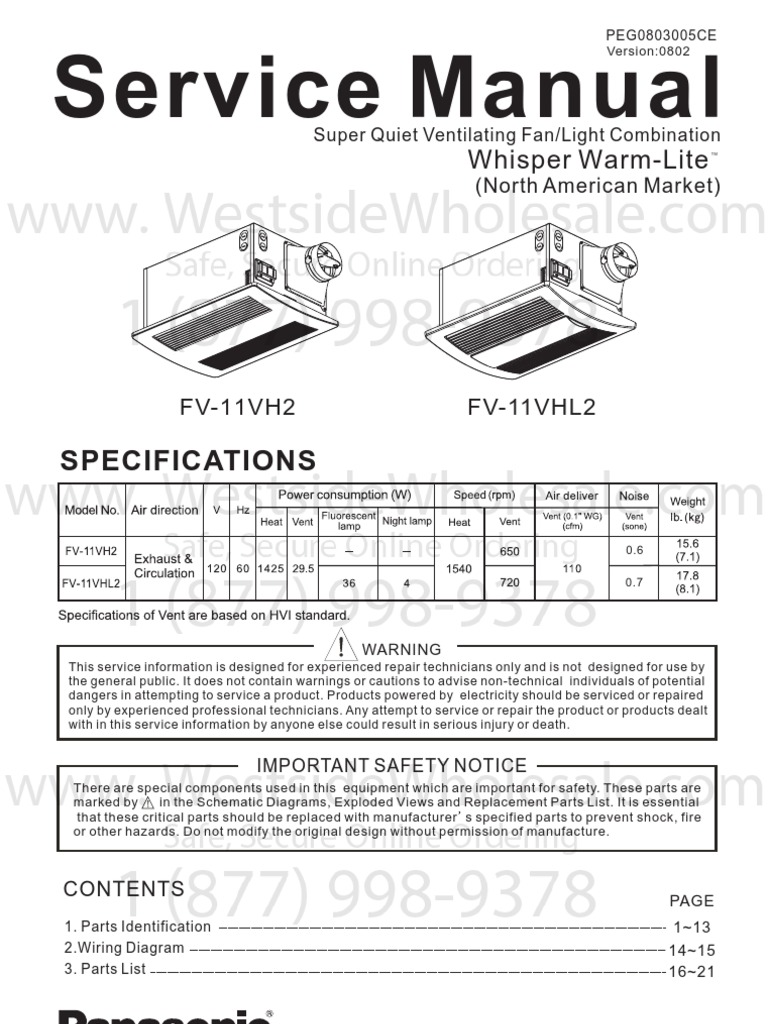 Panasonic - FV-11VH2_VHL2.Manual Spec Sheet- Westside ... from imgv2-1-f.scribdassets.com We did not find results for: Check spelling or type a new query. Maybe you would like to learn more about one of these?